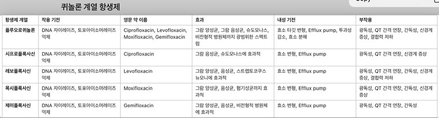 1. 퀴놀론 계열 항생제